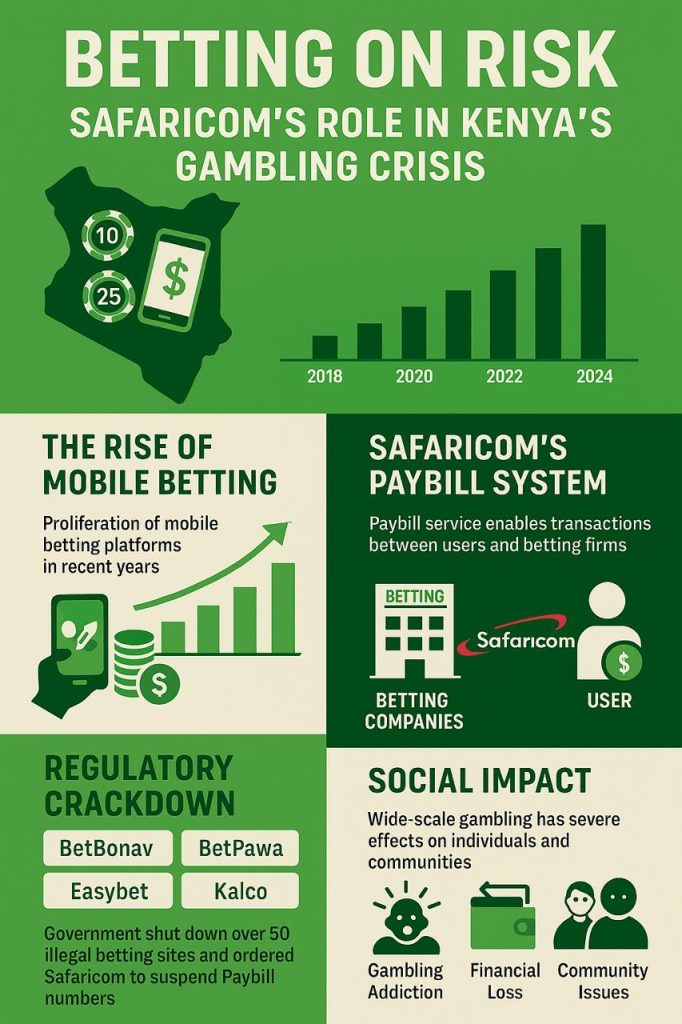 Safaricom PLC, Kenya’s largest telecom operator and mobile money provider, has been directly linked to the rise of illegal online gambling in the country.