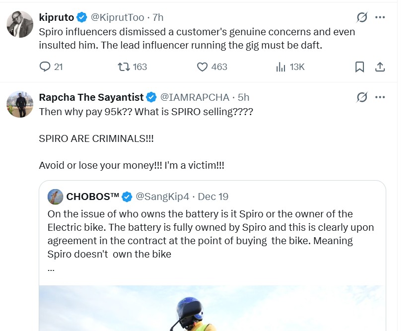 For months, Kenyan electric motorcycle riders have taken to social media to air frustrations about Spiro Bikes, raising questions about ownership terms, customer treatment, and what they describe as a growing pattern of silence and hostility from the company’s communications apparatus.