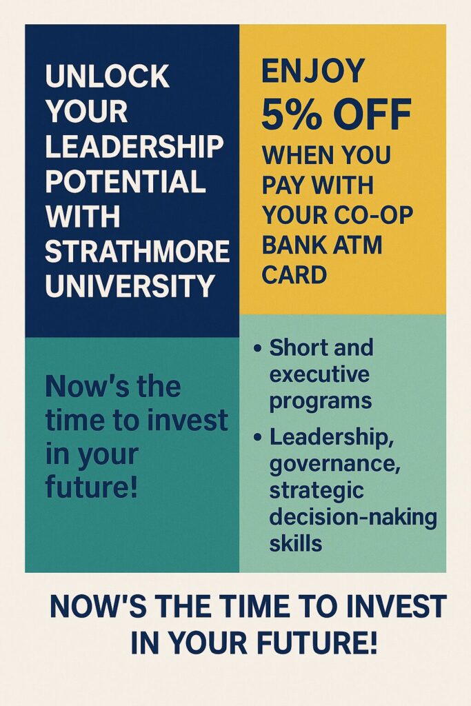 “Now’s the time to invest in your future. We are unlocking leadership potential by making it easier and more affordable for learners to access our training,” said a representative from Strathmore’s Executive Education division.